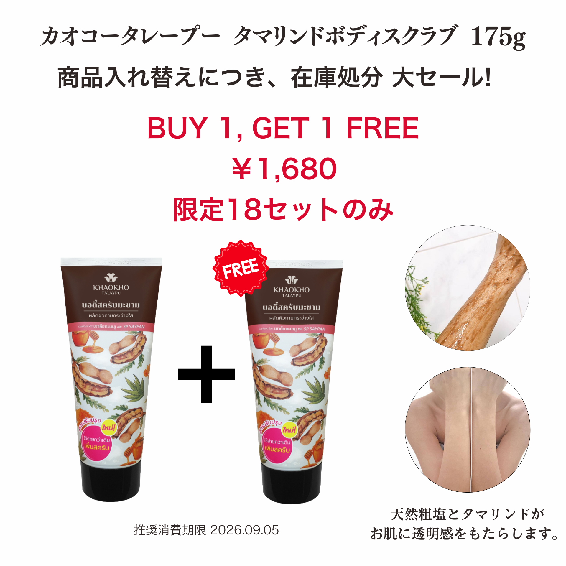 【商品入替 在庫処分セール Buy 1, Get 1 Free!】カオコータレープー タマリンド ボディスクラブ KT